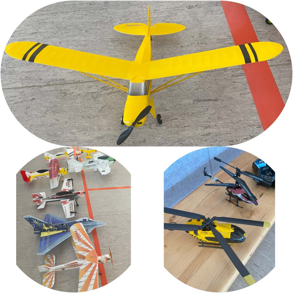 Mini-Jet, 3 Mini-Helis, Twin-Prop, Dreifachdecker, Magnum und verschiedene andere Kunstflugmaschinen wurden mit Spaß durch die Hallenluft bewegt!